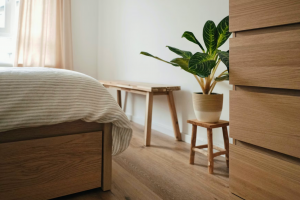 Hardwood flooring in the bedroom can create a cozy and comfortable atmosphere. And, it’s a great option for those who suffer from allergies as it does not accumulate dust and other allergens as easily as carpet does.
